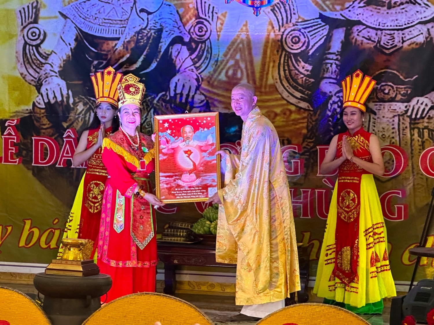 Tại buổi lễ, Trung tá Nguyễn Thị Minh cũng đã trao tặng ảnh Bác cho chùa Quan Âm.