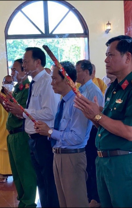 Tại chùa Quan Âm số 10 (Hồng Ngự, Đồng Tháp), các đồng chí lãnh đạo và đại biểu đã trang nghiêm đảnh lễ, dâng hoa, dâng hương tưởng nhớ, tri ân công đức Quốc Tổ Hùng Vương và các vị tiền nhân có công dựng nước và giữ nước.