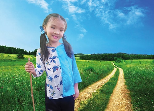 Bé Yến Nhi trong trang phục hát bài “Em bé quê”.