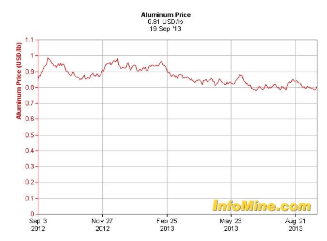 Sơ đồ cho thấy mức giá nguyên liệu nhôm đang giảm