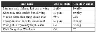 Ở chế độ bảo vệ High, thời gian màn hình bị mờ và bị khóa sẽ ngắn hơn chế độ <_st13a_place w:st="on"><_st13a_city w:st="on">Normal. Để chuyển đổi giữa hai chế độ bảo vệ, bạn bấm chuột phải vào biểu tượng hình lá chắn dưới khay hệ thống của PrivateEye, rê chuột vào Security và chọn chế độ Normal hoặc High. Bạn xem sự khác nhau giữa hai chế độ ở bảng so sánh dưới đây.